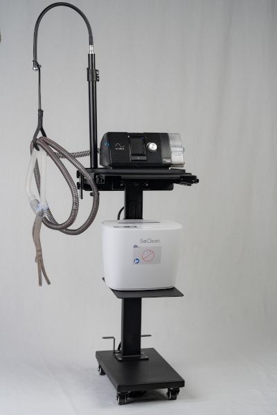 My CPAP Caddy is the first height-adjustable CPAP stand with easy-rolling independent locking wheels allowing you the ability to position your machine beside your bed when you need it, and roll it away when your done—promoting a decluttered, organized room for greater peace and less mess. Easily adjust the height and positioning for better comfort, consistent airflow, and a quieter, safer sleep experience.